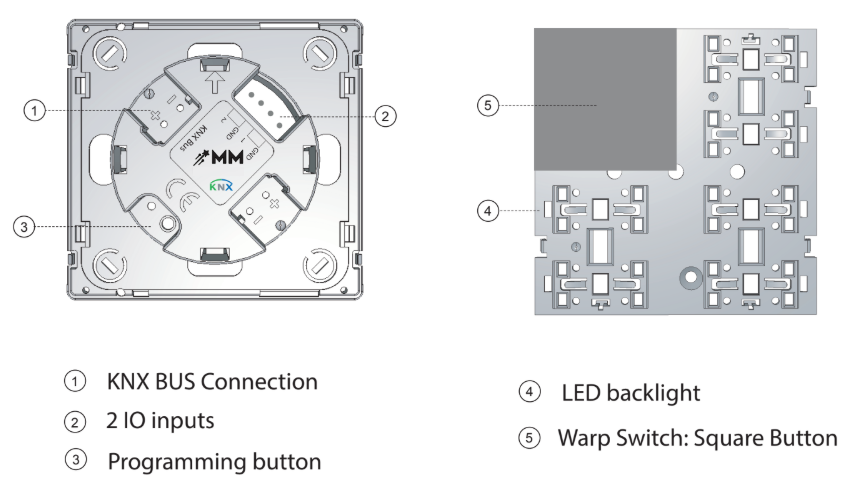 Dora KNX Plastic serie 2-4 gang/button keypad,Internal temperature reader , 2 analog input