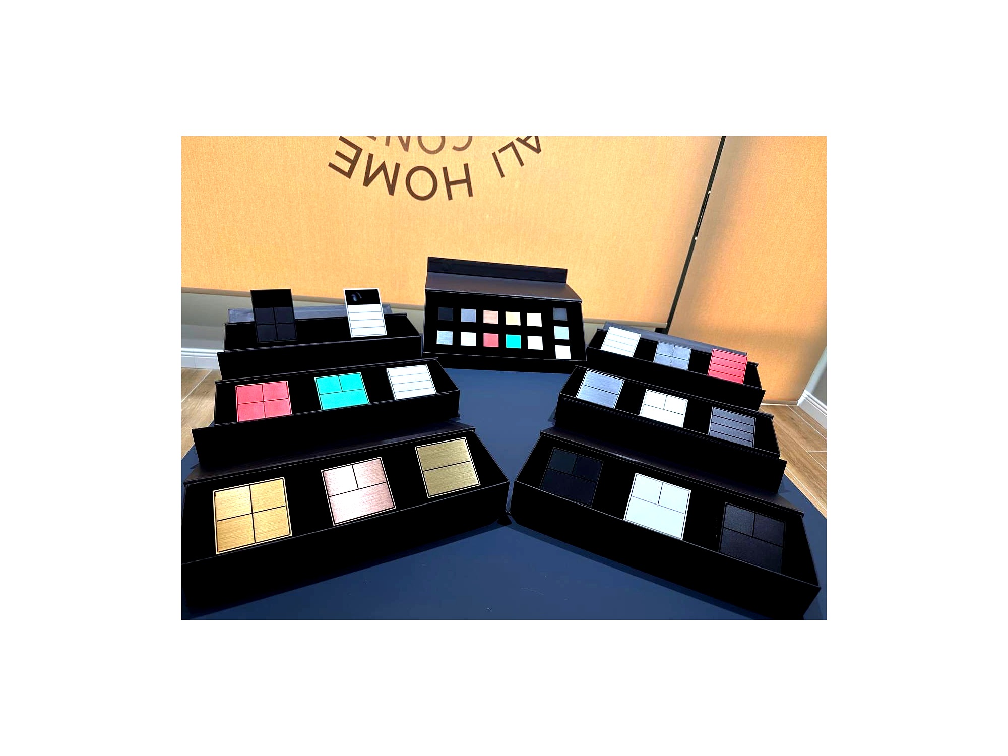 The case includes 7 boxes — 6 featuring fully functional products, and 1 dedicated to the color palette.