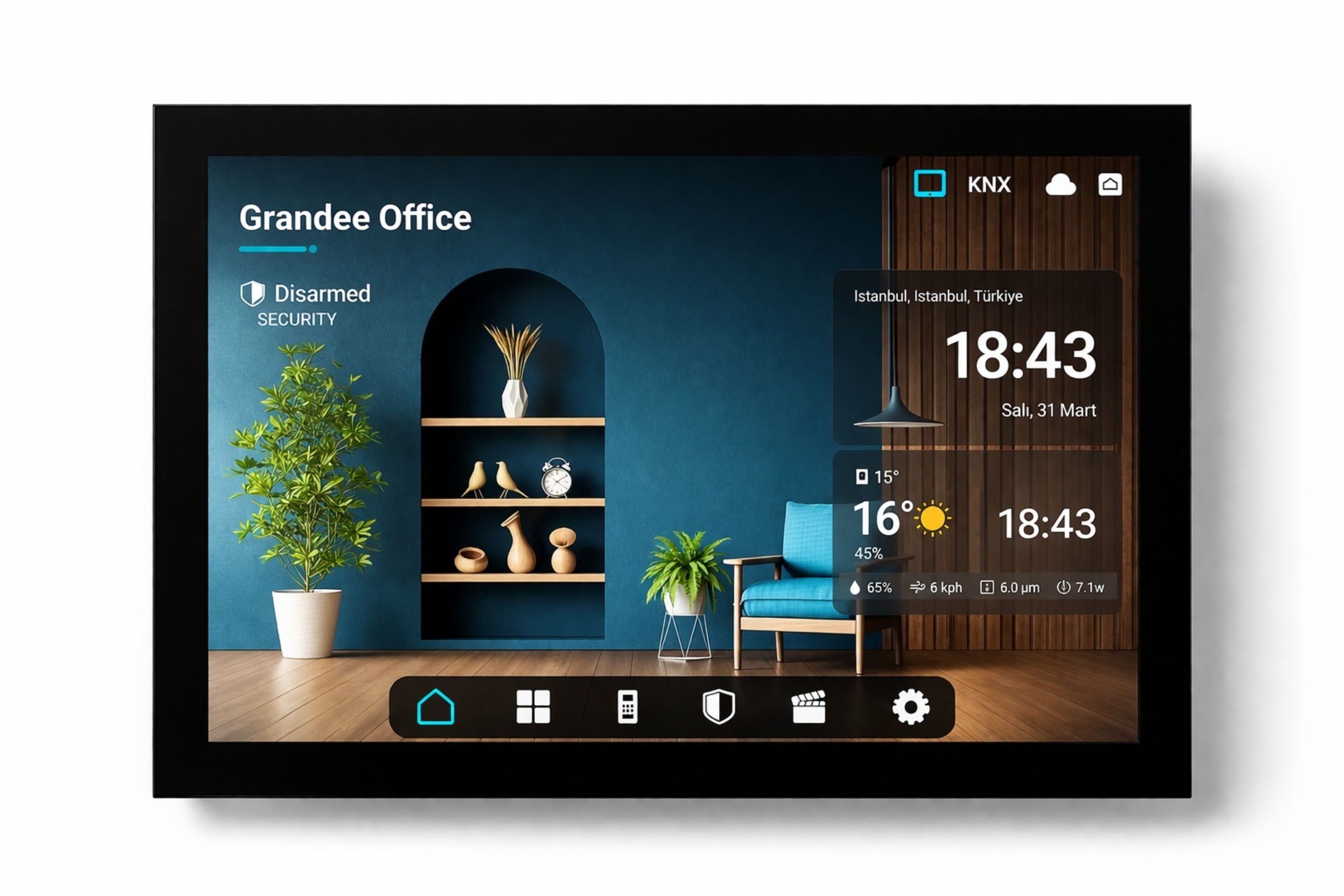 Integration Based on KNX Smooth automation and complete compatibility with KNX systems. Easily manage lighting, air conditioning, curtains, security, and more. Adaptable Interface, Customize layouts, controls, and icons to create a unique user experience. Modern Style, By using sturdy materials and a beautiful design, it enhances the visual appeal of your house.
